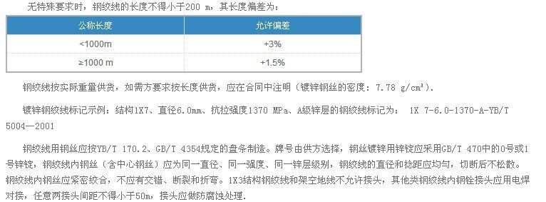 鍍鋅鋼絞線采用的標準是YB/T 5004-2001,效采于日本標準JIS G3537—1994《鍍鋅鋼絞線》。與日本標準相比存在差異如下: