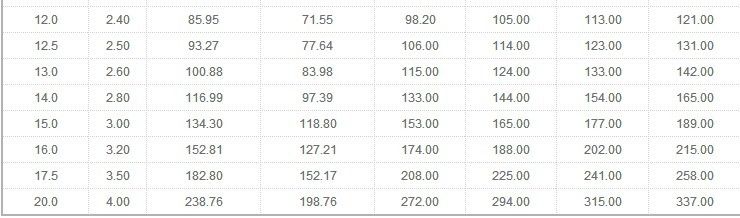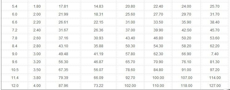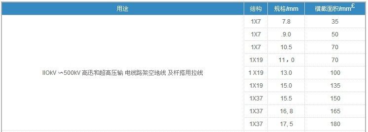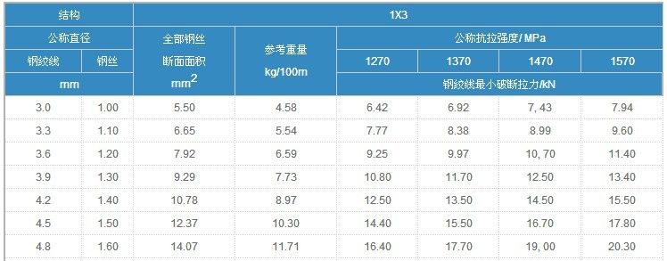 注:根據用戶要求,可生產表2-表5中未列入的中間規格鋼絞線,力學性能按相鄰較低級別考核。