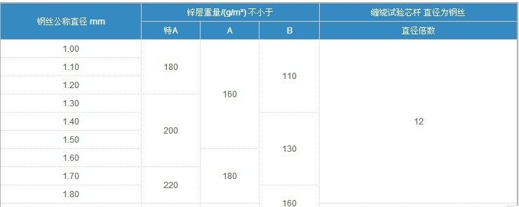 鍍鋅鋼絞線內鋼絲鋅層級別分為三級:特A、A、B。鋅層級別應在合同中注明,未注明時由供方決定